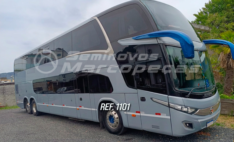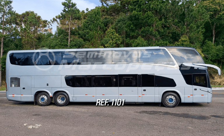 MARCOPOLO PARADISO 1800 DD SCANIA K400 6X2 ANO 2018/2019 MARCOPOLO PARADISO 1800/ 6X2 SCANIA K400/ 43 LUGARES LEITO TOTAL/ MONITORES, GELADEIRAS/ CAFETEIRAS/ TOMADAS USB/VIDROS COLADOS/ PAREDE DE SEPARAÇÃO/ CAMAROTE MOTORISTA AUXILIAR/SUPORTE PARA CUIA – REF 1101
